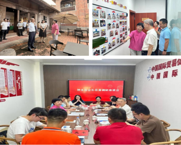 钟会长听取了市贸促会工作汇报和基层建设情况,与会员企业座谈,并重点考察了莆田贸促“全城热赛·约企来”(企业交流)、“莆田优品”(线上线下展销供应链)、“有商事纠纷,找莆田贸促”(商事法律服务)及 “新电商产业学院”(产教融合)四大特色公共服务平台。