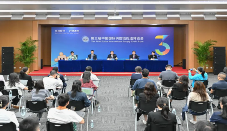 中国贸促会于2025年7月20日(星期日)下午举行第三届链博会闭幕新闻发布会。中国贸促会副会长李兴乾介绍第三届链博会有关情况,并与中国贸促会产业促进部部长杨晓军、中国国际展览中心集团有限江南网站董事长林舜杰、北京市贸促会主任李向英答记者问。中国贸促会新闻发言人赵萍主持发布会。