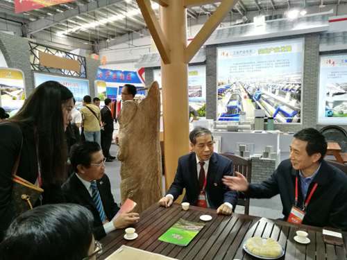 省贸促会党组书记、会长陈震在展会现场与参展企业交流