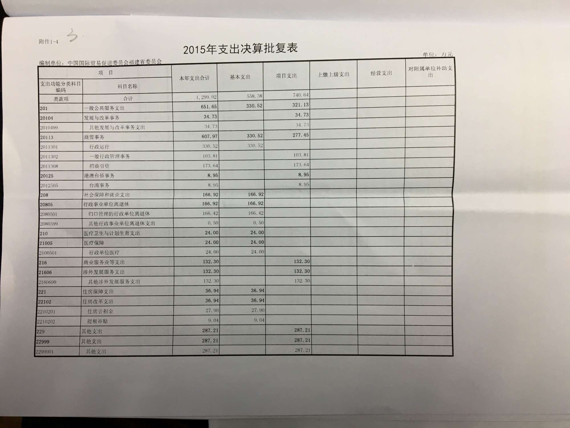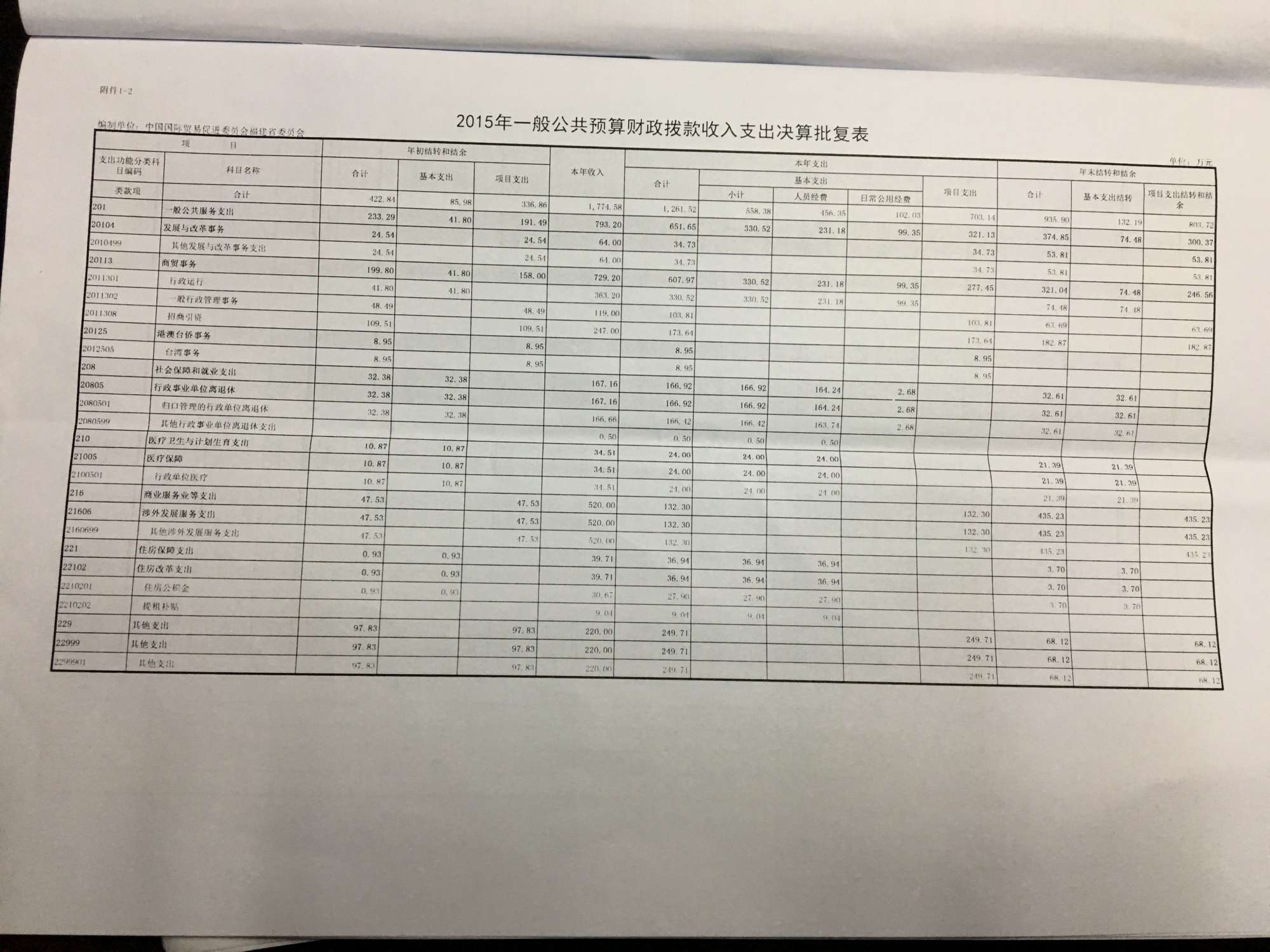 2015年度福建省贸促会决算说明