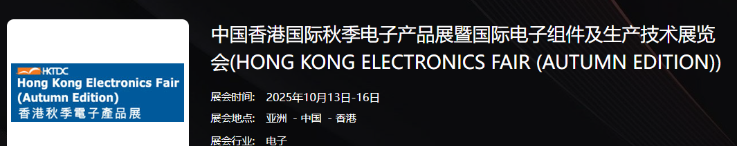 香港秋季电子产品展暨国际电子组件及生产技术展HK Electronics Fair(Autumn Edition)规模不断壮大,2020年的展会汇聚超过3,700家来自23个国家和地区的企业参展,刷新历届纪录。与香港秋季电子产品展同期举行的国际电子组件及生产技术展,是亚洲首屈一指的电子元件、组件、生产技术、太阳能光伏和显示技术展览会,由香港贸发局与慕尼黑国际博览亚洲有限江南网站合办。两大展览相辅相成,为买家缔造更多机会采购相关产品及物色合作伙伴,发掘商机。